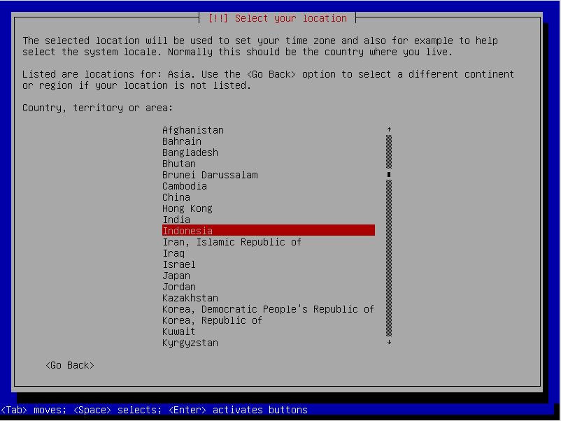 3.lalu anda akan diminta untuk memilih lokasi dimana anda berada silahkan pilih "other > asia > indonesia "