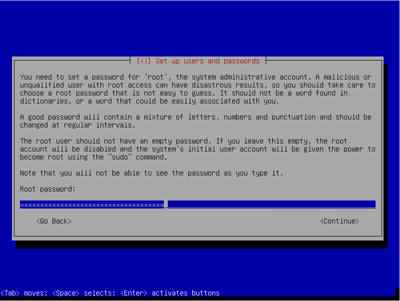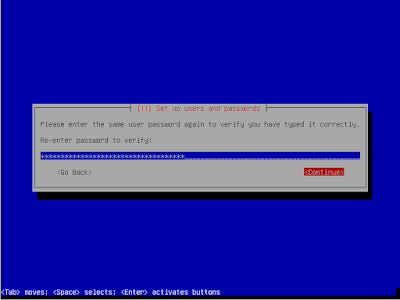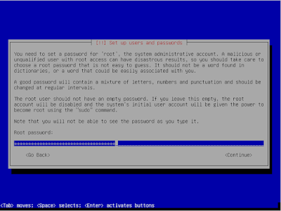 15. Selanjutnya anda akan diminta memasukan password untuk user "ROOT" yaitu sang administrator sang pernguasa penuh debian anda , masukan password lalu tekan enter