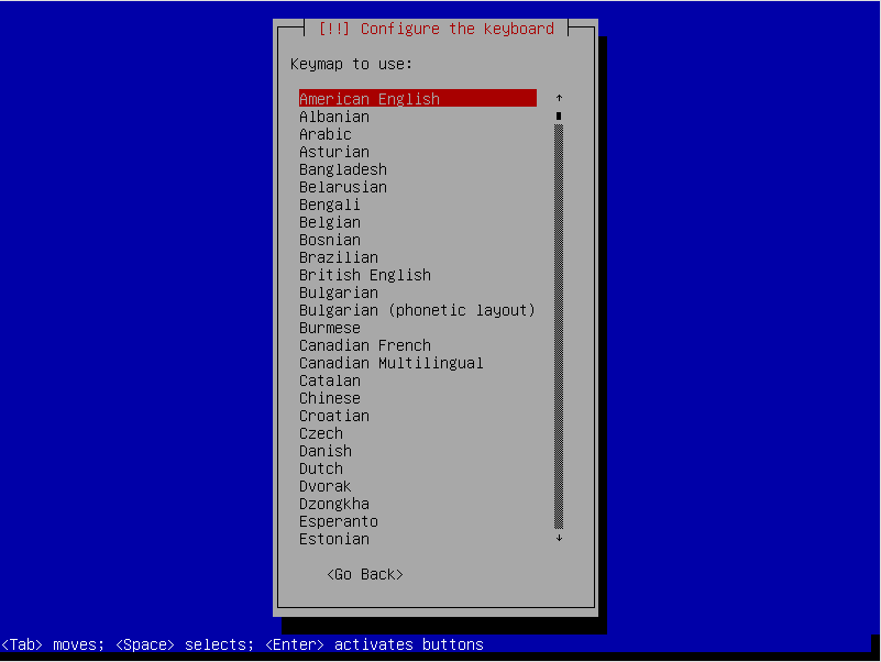 5. selanjutnya anda akan diminta memilih type atau jenis keyboard yang anda gunakan silahkan pilih "Amerikan English" jika anda mengunakan keyboard qwerty