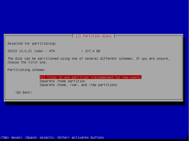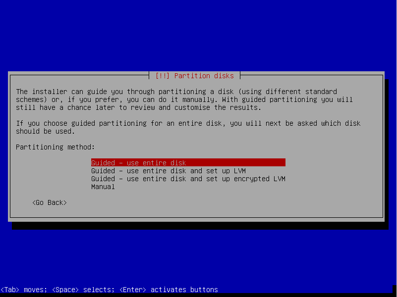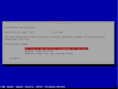 20. pada gambar diatas sekarang anda dalam proses yang disebut pemartisian anda memiliki 4 pilihan dalam pemartisian yaitu yang pertama partisi otomatis kedua partisi otomatis dengan LVM ketiga partisi otomatis terenskripsi dan LVM dan ke empat partisi manual , silahkan anda pilih cara pertama yaitu partisi otomatis pilihan pertama lalu tekan enter