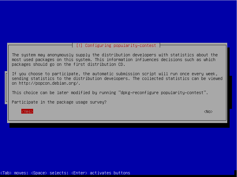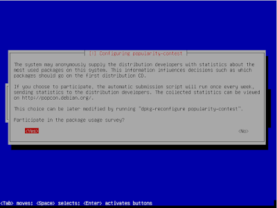 22. muncul "participate in the package usage survey?" seperti gambar dibawah ini silahkan pilih "yes" lalu tekan enter