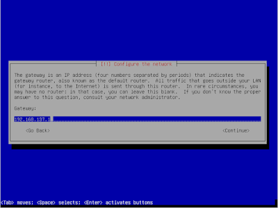 11. selanjutnya akan keluar otomatis gateway 1 dari ip anda jika anda mengunakan gateway 1 maka anda tidak perlu mengubah ip gateway dan langsung tekan enter jika tidak silahkan anda ganti sesuai ip gateway anda dan tekan enter