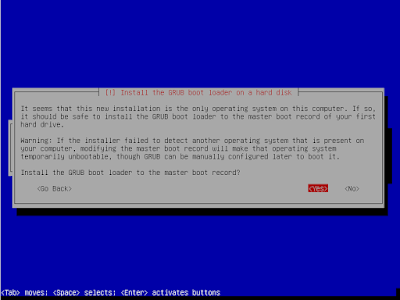24.lalu muncul seperti gambar dibawah ini yaitu "install the GRUB ..." silahkan pilih "yes" tekan enter