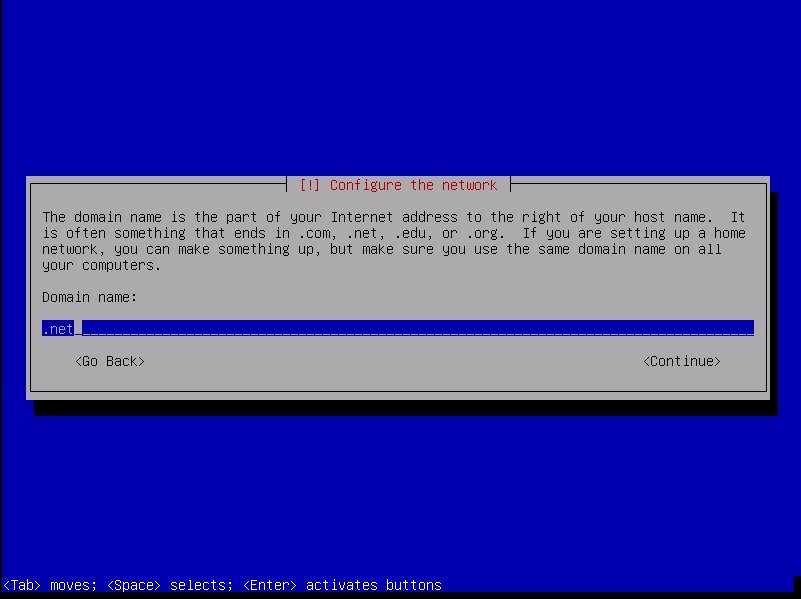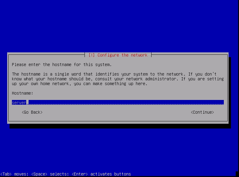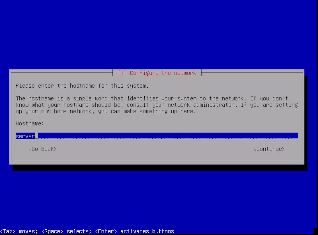 Lanjutkan ketikan hostname yang akan dipakai pada server yang Anda Install. Seperti contoh berikut.