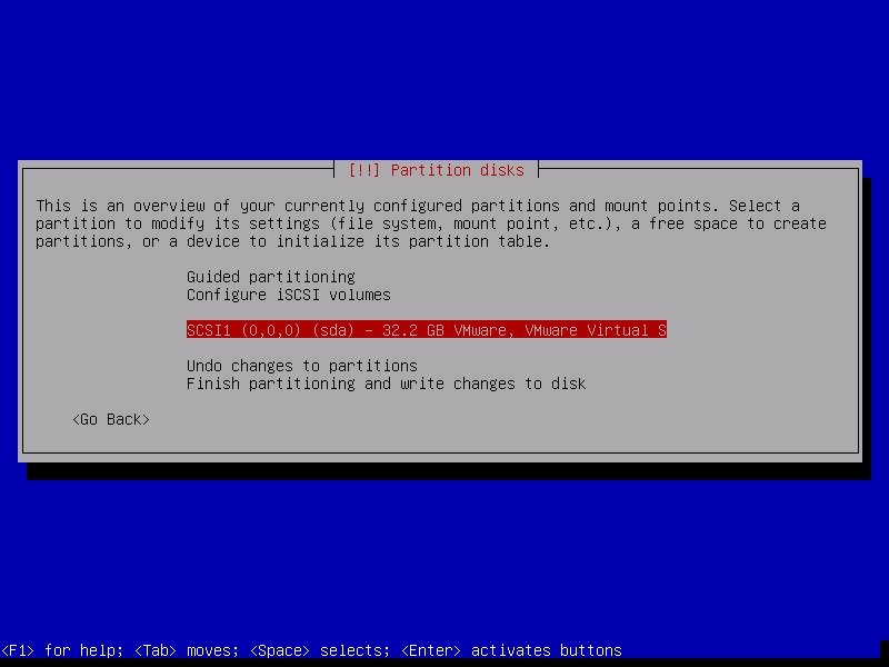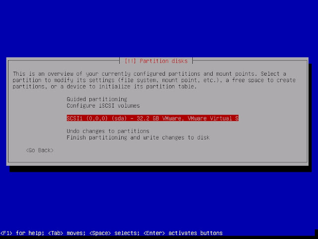 Selanjutnya, pilih Disk yang akan dipakai lokasi Instalasi Debian 9. Pada panduan ini penulis menggunakan mesin virtual.