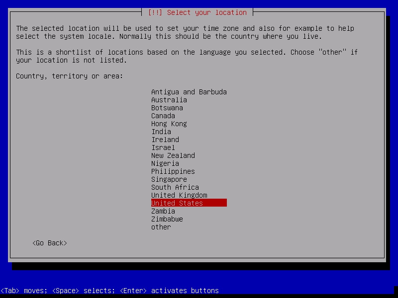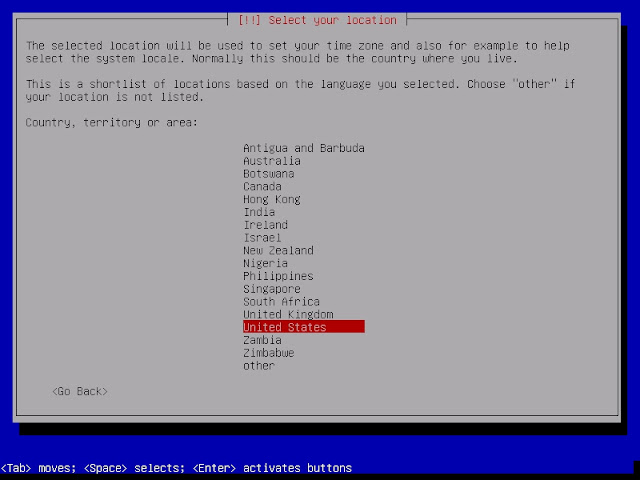 Selanjutnya lakukan pemilihan lokasi Anda saat melakukan Instalasi Debian 9