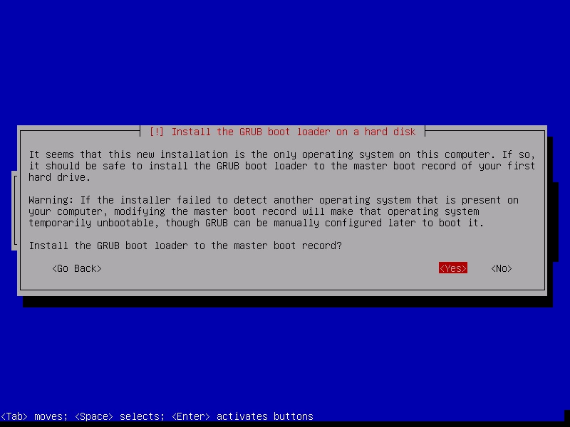 Selanjutnya, pilih opsi Yes untuk proses instalasi GRUB dan kita tunggu sampai selesai